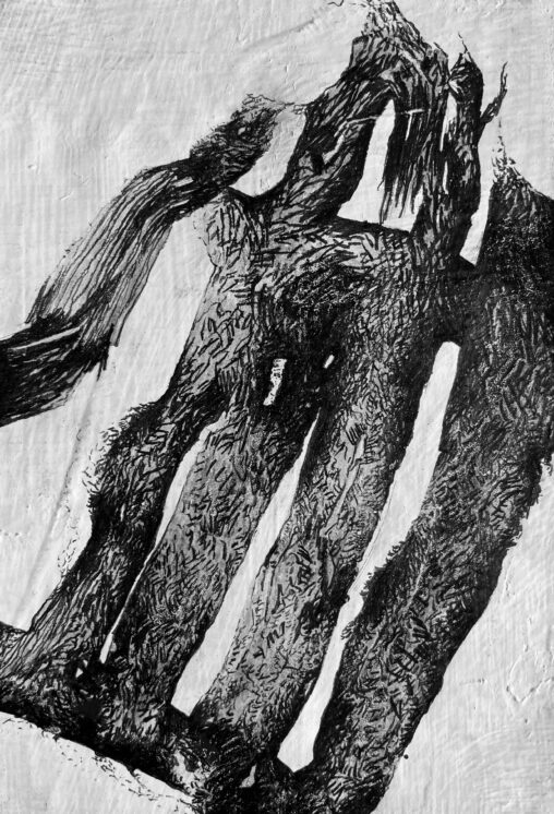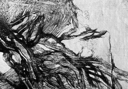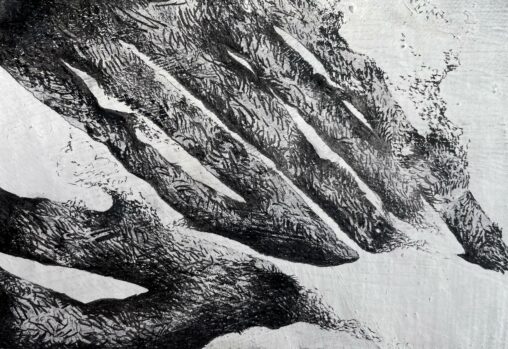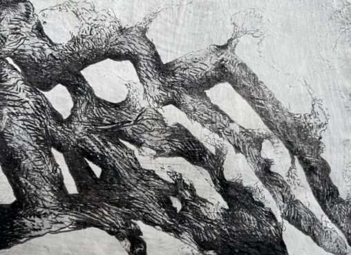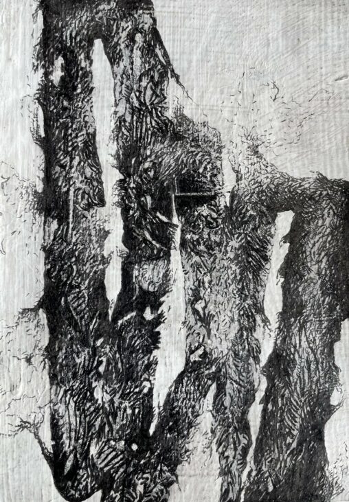 Racine / dessin à la pierre noire sur papier préparé / 10 x 15 cm / 2025