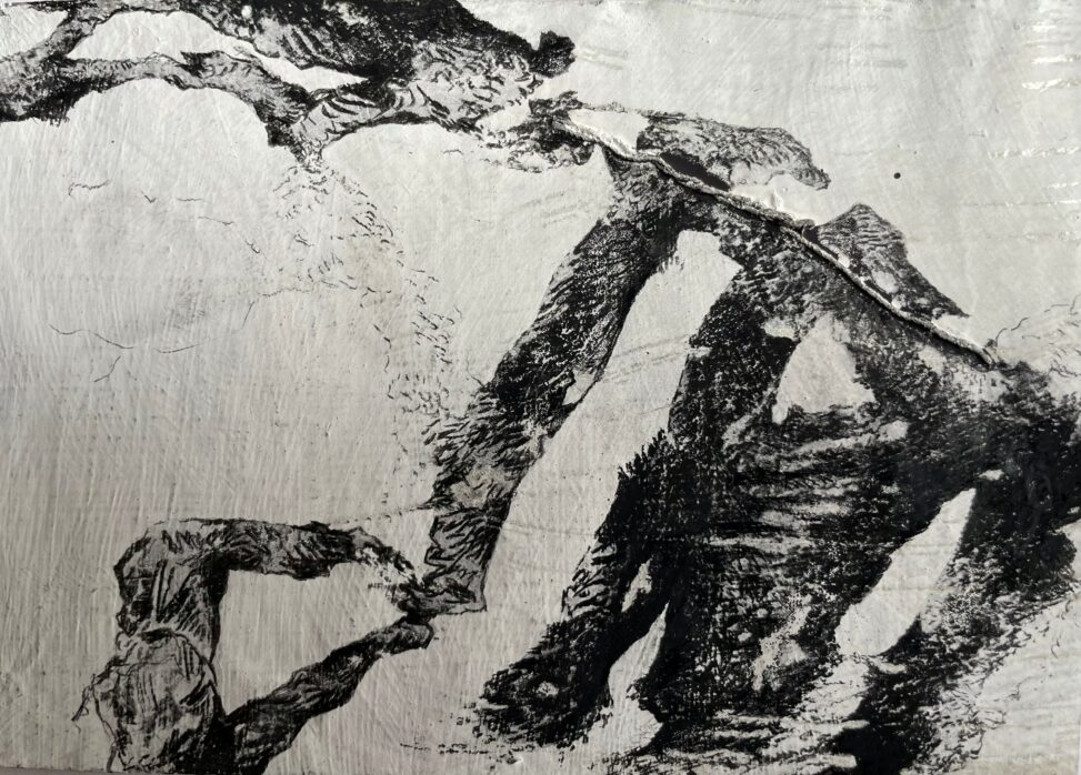 Racine / dessin à la pierre noire sur papier préparé / 10 x 15 cm / 2025