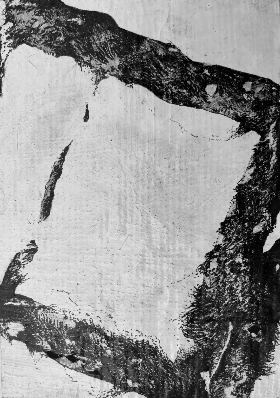 Racine / dessin à la pierre noire sur papier préparé / 10 x 15 cm / 2025