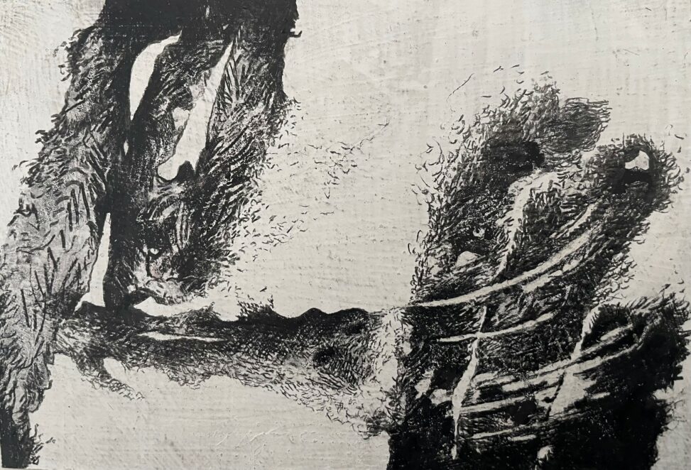 Racine / dessin à la pierre noire sur papier préparé / 10 x 15 cm / 2025